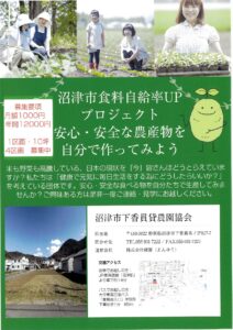 今回、私たちは「沼津市下香貫貸農園協会」を立ち上げ、地域の方が野菜づくりを楽しめる場所として、畑の一区画を開放することになりました。