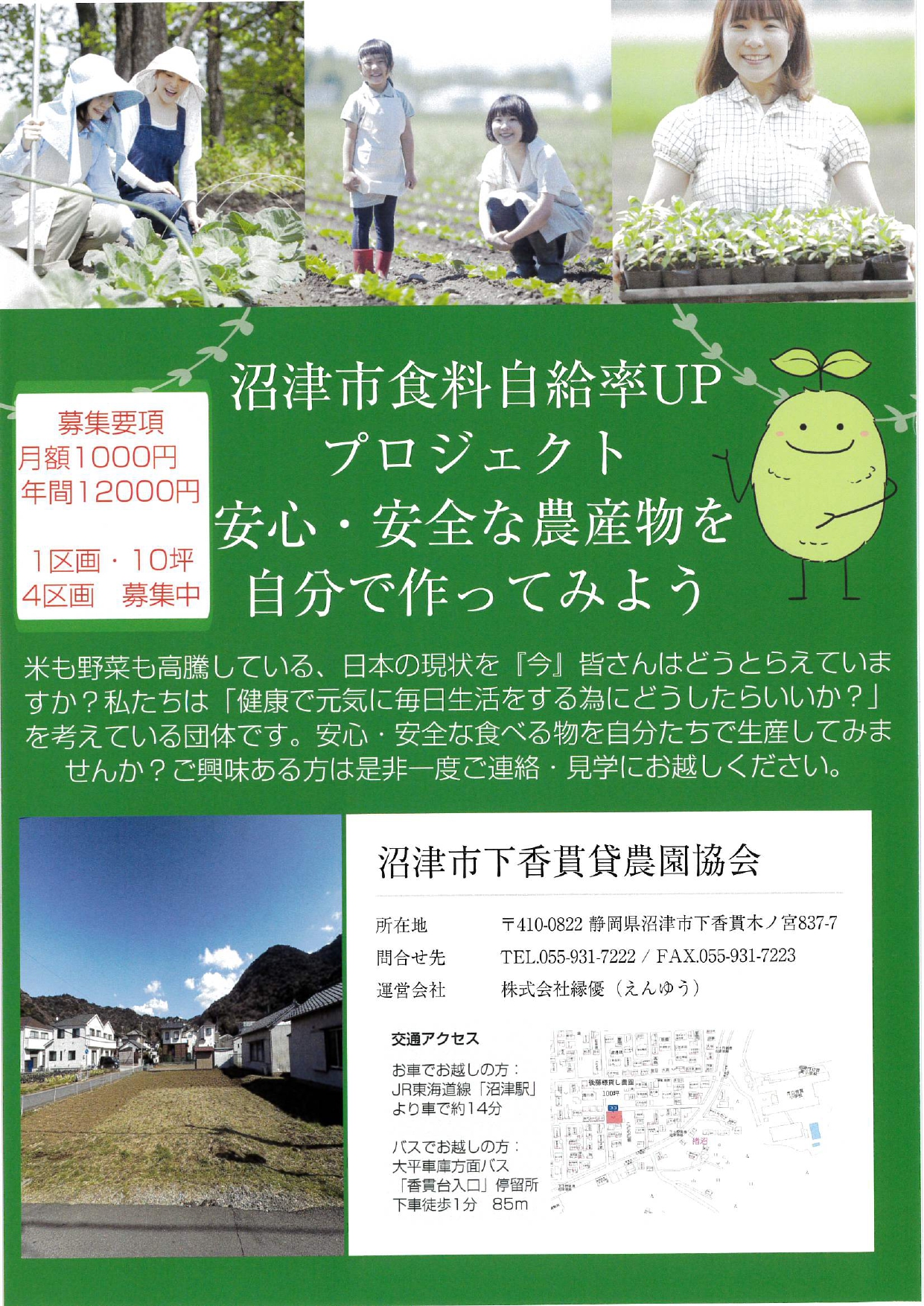 最近米や食料品や野菜がとっても高いですね。ニュースなどではスーパーなどでの野菜の販売価格がどんどん上がっている様子が連日流れています。生活コストが全体的にかなり上がっているのに自分達の手元にあるお金は全然増えない食べる物も粗悪なものになっていく、そんな悪循環にならないかな・・・と皆さん少なからず感じていませんか?自分達が普段口にする物が高くなるという事は『良質な栄養』が気軽にとれない時代がこれからくると私は個人的に考えています。そんな話を畑の地主さんとしていた時の事、悲観してても、しょうがない。今自分達に何ができるか考えて少しでも目の前の暮らしをよくしたいな、というのが起点になり今回沼津市下香貫貸農園協会を立ち上げ貸農園のプロジェクトをスタートしました。